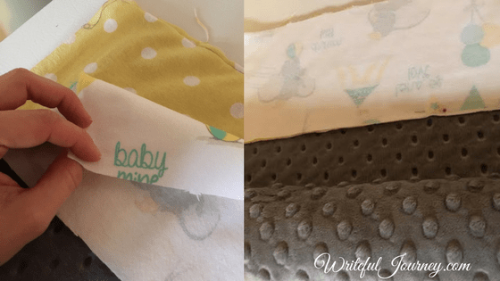 Babies love texture. In this tutorial I created a strip quilt on my sewing machine using three flannel patterns for the front and a minky fabric for the back. I have made my children a few of these and they love them. They are soft and warm without being bulky. But the best thing about these quilts is….we quilt with a simple sewing machine. Yea! Also, I have a tutorial on creating a matching crib sheet. Tutorial soon!