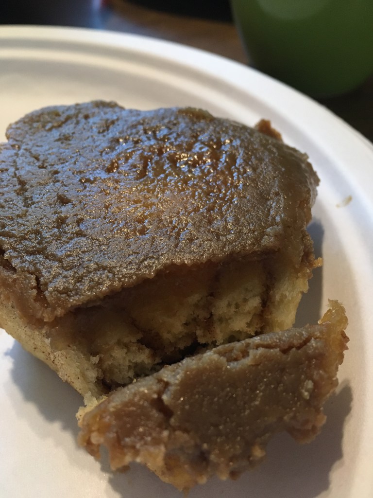 - When still warm, flip pan over onto a wooden cutting board or a baking pan. The caramel will drip down the sides, adding more deliciousness to the rolls.