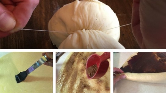 - Use a long piece of dental floss. Slide underneath and pull strings together to cut the dough. Cut every 1-2 inches. Place an inch or so apart in the pans fill with the caramel sauce.